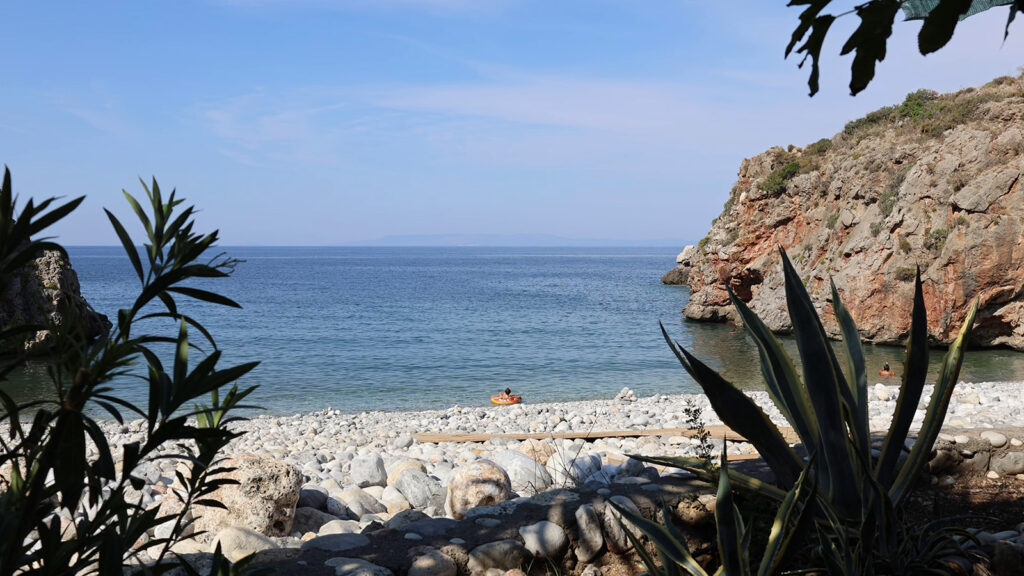 It’s a new day in Kalamata and today we are driving out of the city to visit a couple of spots along the coastline. First stop and number 5 on our list is Foneas Beach. A spectacular beach made up of large round stones. There is a small bar at the top which serves drinks, snacks and souvlaki for lunch. Really enjoyable.
