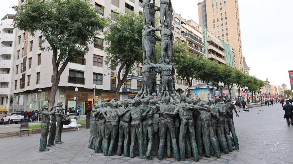 Finally we will go to the newer parts of Tarragona and have a look at a great monument called Monumento a los Castellers. It’s located on the street Rambla Nova. A castell is a human tower built traditionally at festivals in some parts of Catalonia. This monument, completed in 1999, made in bronze by artist Fracesc Angles i Garcia.