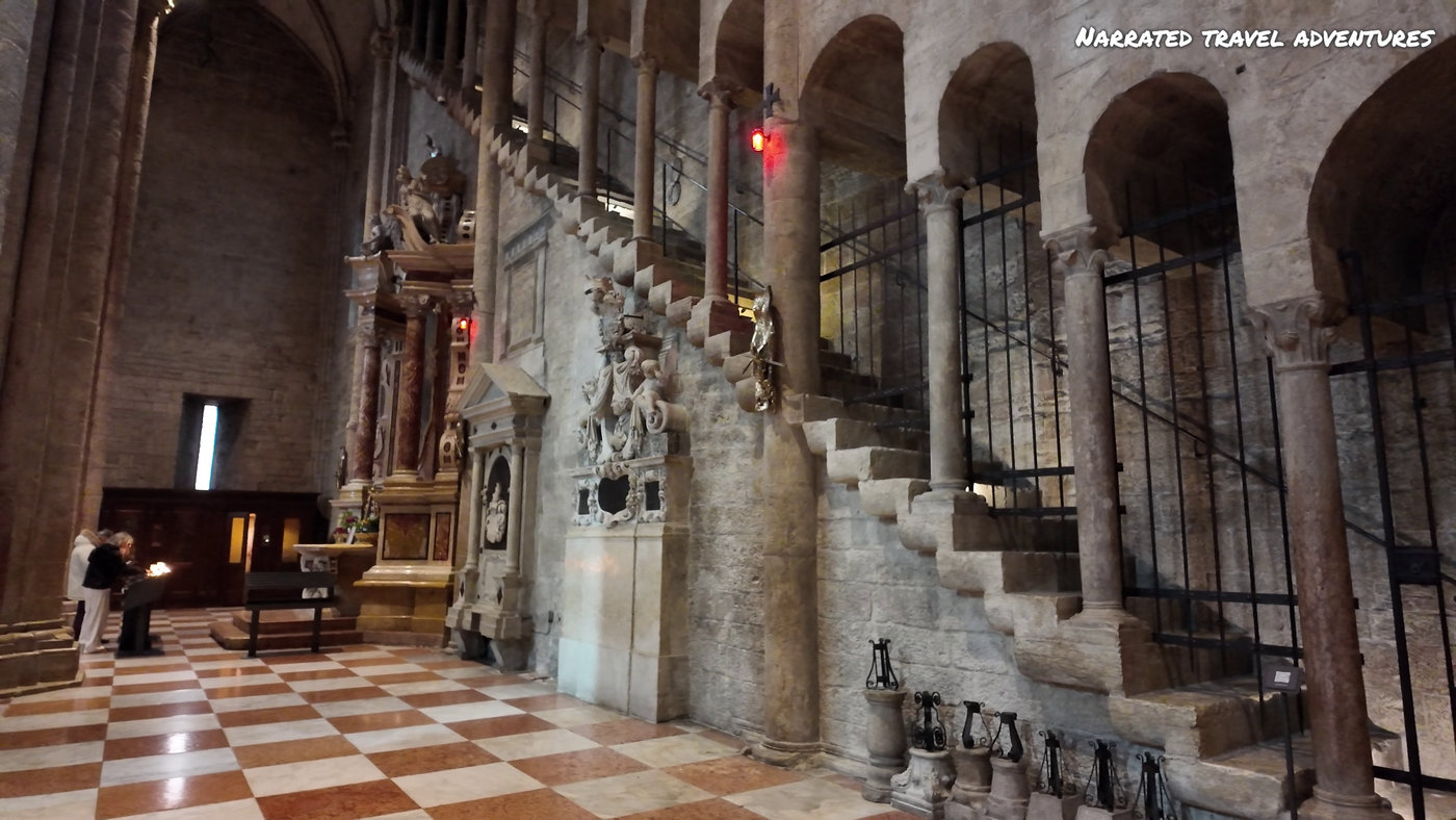 The Duomo di San Vigilio is the cathedral of Trento and a masterpiece of Romanesque architecture in northern Italy. Built between the 11th and 13th centuries, it stands on the site of an earlier early Christian church and is dedicated to Saint Vigilius, the city’s patron saint. The cathedral is famous for hosting important sessions of the Council of Trent in the 16th century. Its façade features a large rose window and a richly carved portal. Inside, you will find frescoes, chapels, and a crypt preserving remains of ancient religious structures beneath the present church. Entrance fee to the crypt is normally 3 euros but free with the Trentino card.